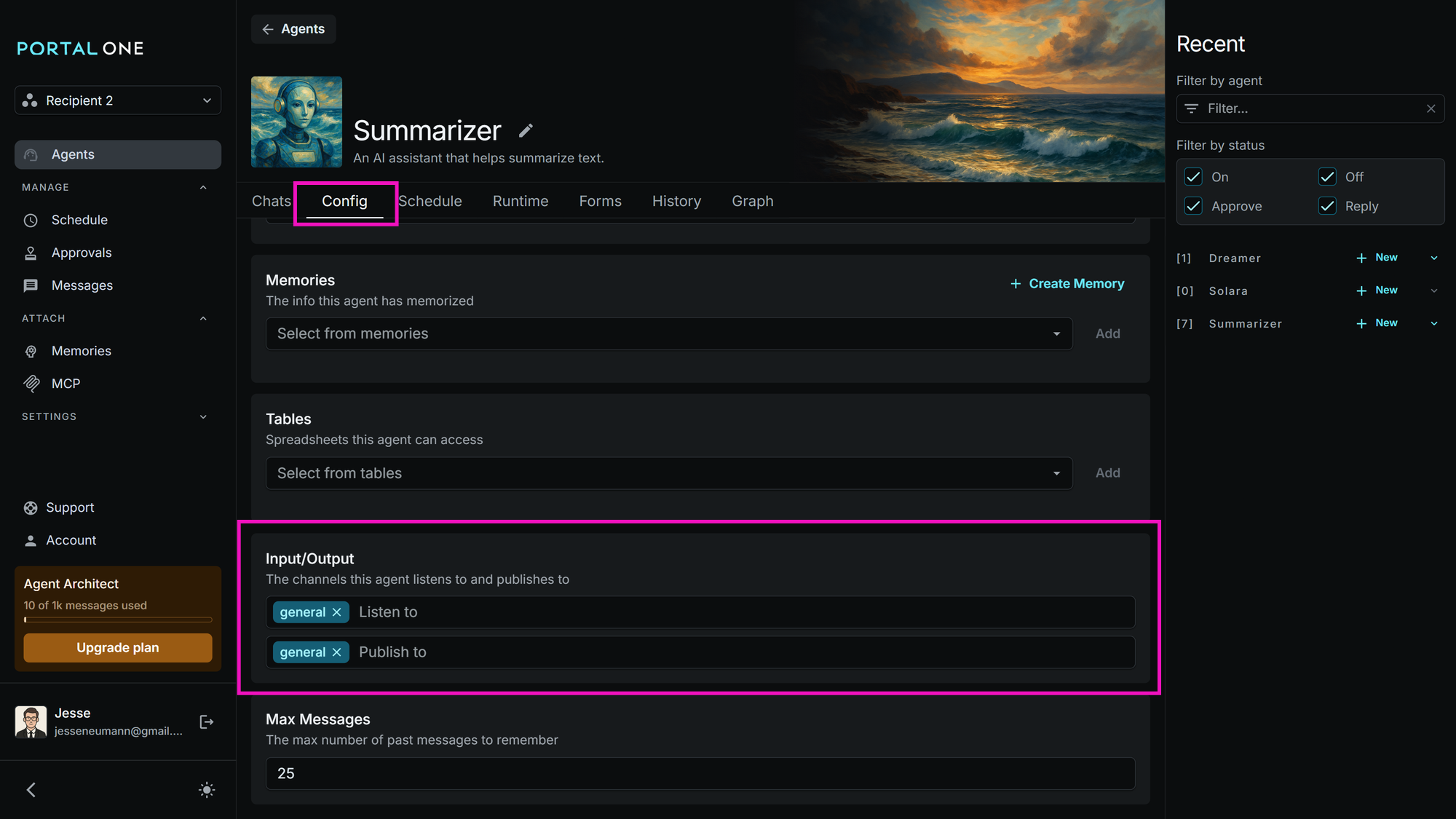 - Summarizer Agent Input Channels: