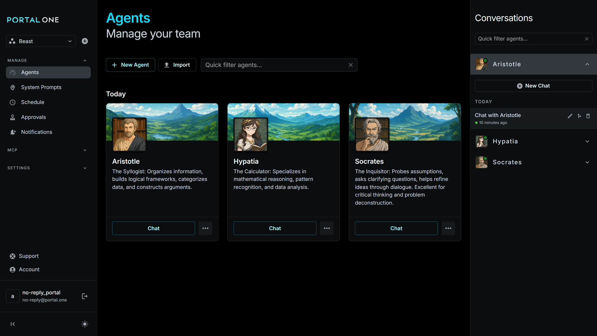 Learn to navigate the Portal One dashboard. Understand the layout & find where to manage AI agents, automate tasks, connect LLMs, and control your AI workflows.