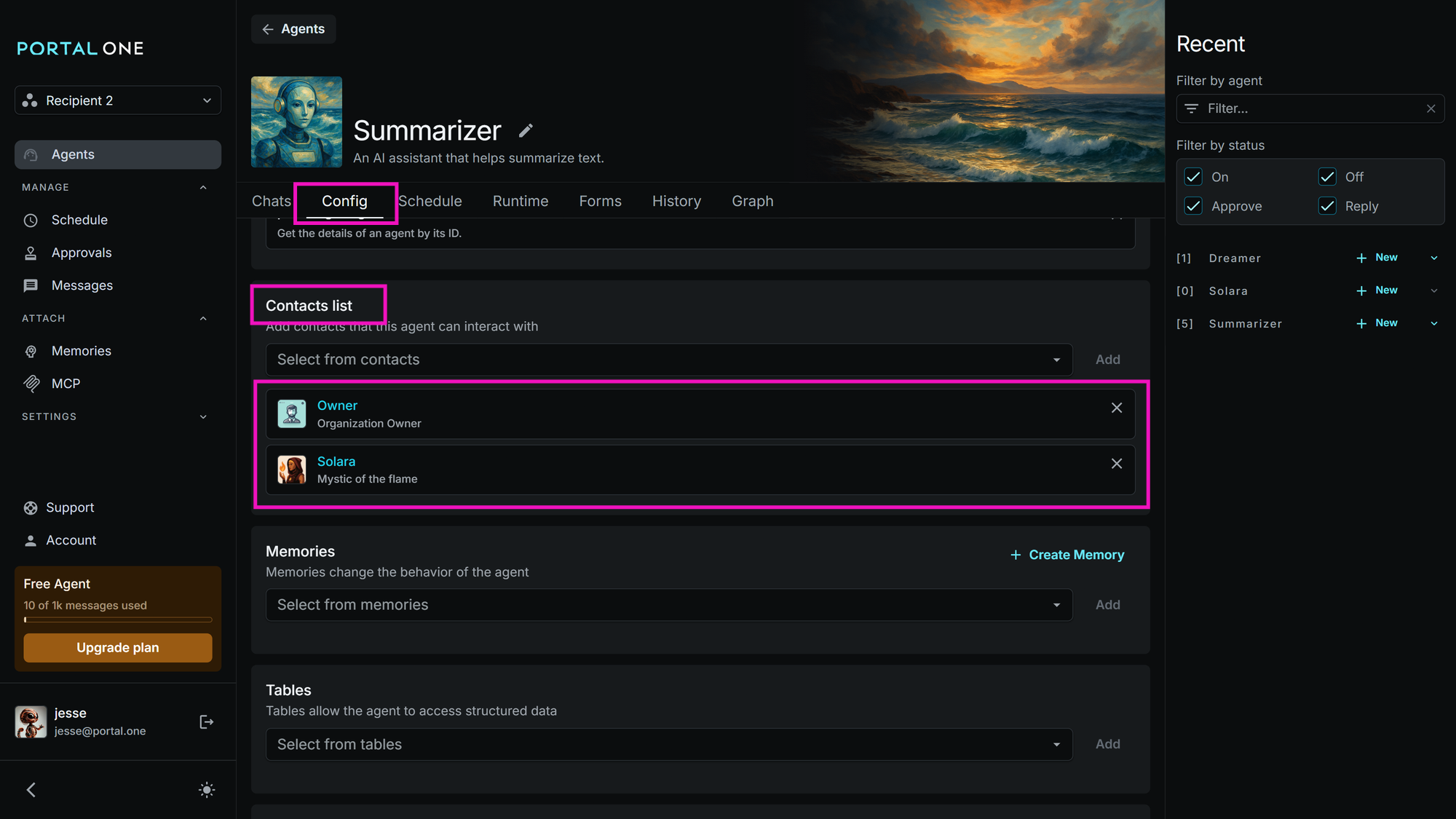 Guide to Portal One Agent Pings & Notifications. Configure contacts (@Owner), get alerts, and respond in the agent's conversation when they need attention.